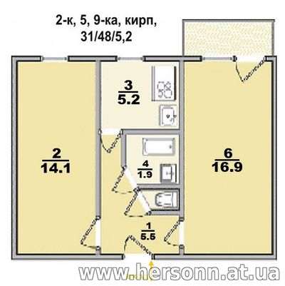 Загальна 36.7М², Житлова 18, Кухня 8.3.
